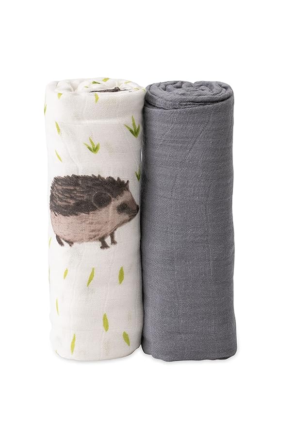 Deluxe Muslin Swaddle 2 Pack: Charcoal + Hedgehog